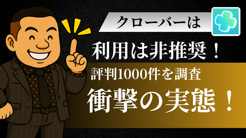 クローバーの評判、めっちゃ気になってへん?公式ストアの評価は高いけど、「ほんまに出会えるんか?」「サクラはおらんのか?」って不安になるよな🤔 ワシが1000件のレビューと利用規約をガッツリ調べたら、「あれ…これ大丈夫か?」ってポイントがポロポ... -