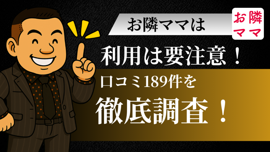 お隣ママの評判って実際どうなん?「近所のママと会える」とか言うてるけど、サクラばっかりとか、課金しても会えへんとか聞いて不安になってへん?🤔 ワシが189件のレビューと利用規約を徹底的に洗い出してみたら、「ん?これはどうなん?」って箇所がい... -