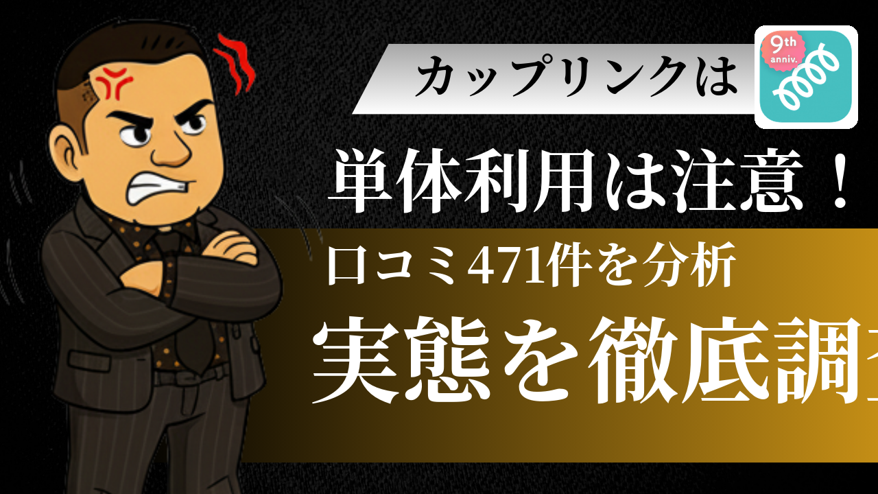 この記事読めば、「カップリンク(CoupLink)に課金してまで使う価値あるんか?」がハッキリ分かるようにしとる。登録ボタン押す前に、3分だけワシに付き合ってみい👍