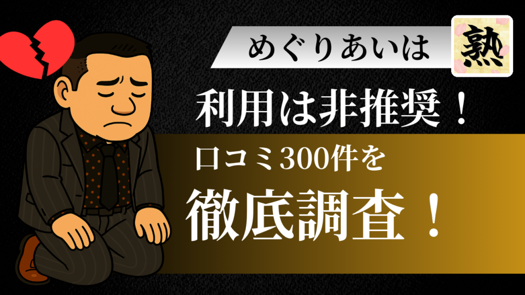 めぐりあいの評判って実際どうなん?ストアの評価はええけど、ネットで「サクラ多い」「運営会社が謎」みたいな噂聞いて、不安になってへん?🤔 ワシが300件のレビューと利用規約をガッツリ調べたら、「うーん、これはどうなん?」って箇所がちらほら見つ... -