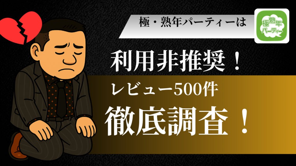 極・熟年パーティーの評判って実際どうなん?ストアの評価は高いのに、「サクラばっかり」「料金が高すぎる」なんて噂も聞いて、不安になってへん?🤔 ワシが500件のレビューと利用規約をガッツリ調べてみたら、「あれ…これ大丈夫か?」と思うポイントがポ... -