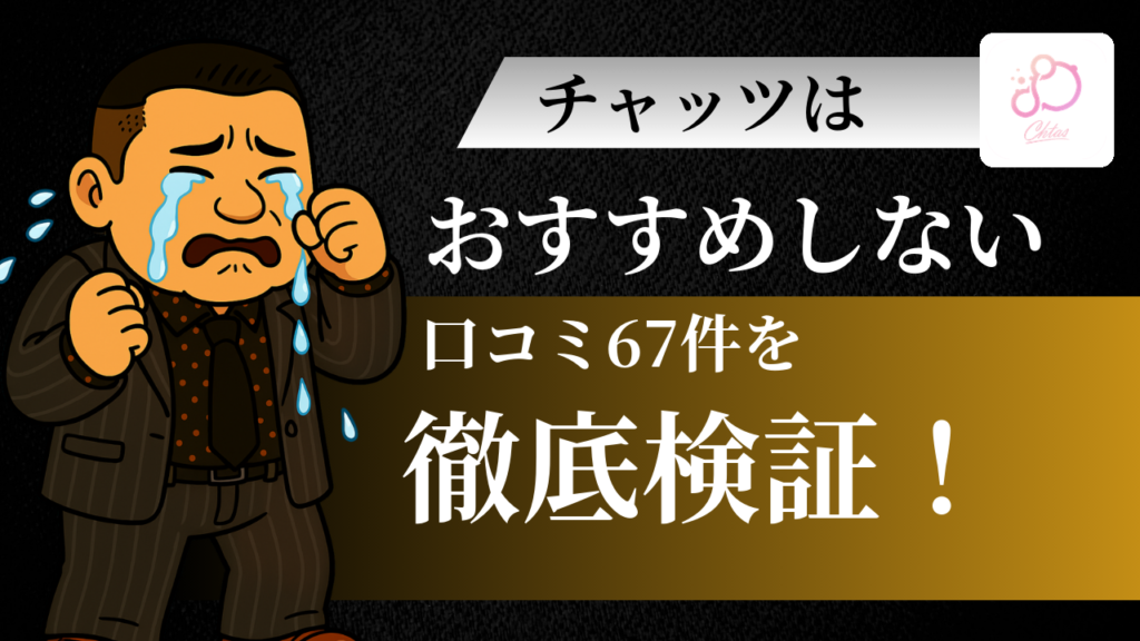 チャッツの評判、ほんまのとこどうなん?「サクラばっかりちゃう?」「課金しても出会えるんか?」って不安になってへん?🤔 ワシが67件のレビューと利用規約をしっかり検証してみたら、「ちょっと待てよ」と思う箇所が見つかったんや。サクラ率4割超えに...