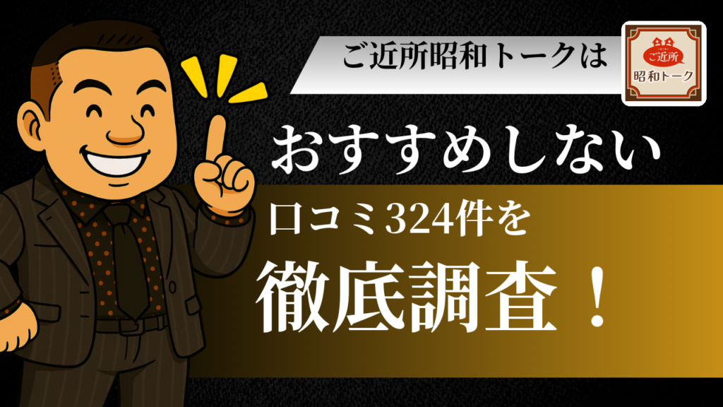 ご近所昭和トークの評判って実際どうなん?公式の評価は★4.2やけど、「サクラ多い」「出会えへん」って声も見かけて、どっち信じたらええか迷ってへん?🤔 ワシが324件のレビューと利用規約をじっくり検証してみたら、ん?ってなる部分がいくつか見えてき... -