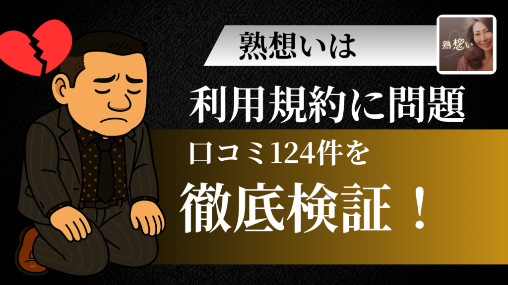 熟想いの評判ってどうなん?公式の評価は★4.2やけど、「サクラ多い」「課金ばっかり求められる」って声も見かけて、正直どっち信じたらええか迷うよな🤔 ワシが124件のレビューと利用規約をじっくり検証してみたら、「ん?これはどうなん?」って箇所がい... -