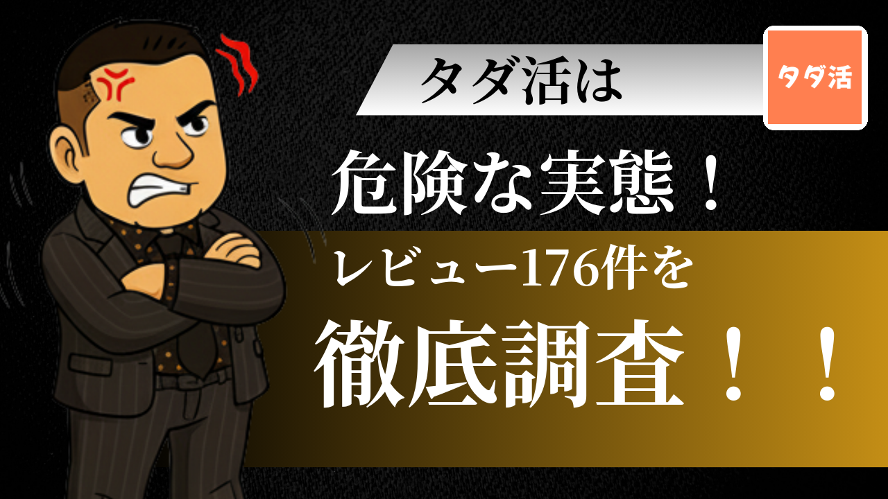 タダ活は「完全無料」という魅力的な謳い文句のアプリですが、調査の結果、安全な出会いの場として推奨することはできません